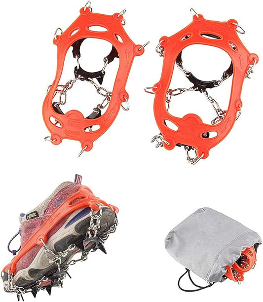 11 Spikes Crampons, Upgraded Version Stainless Steel Anti-Slip, Ice Cleats Grips for Hiking Shoes and Boots, Hiking Fishing Walking Mountaineering