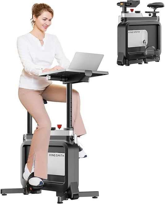 Foldable Under Desk Bike, All-in-one Exercise Bike for Home, Indoor Bike Stationary Bike with Desk, Adjustable Resistance, 264LBS Capacity, Portable Office Bike, Compact Cycling