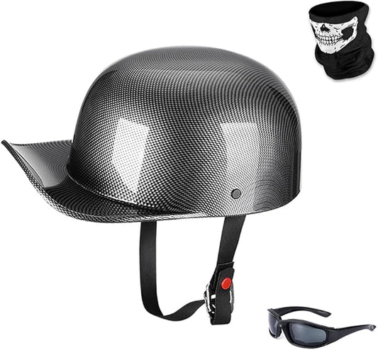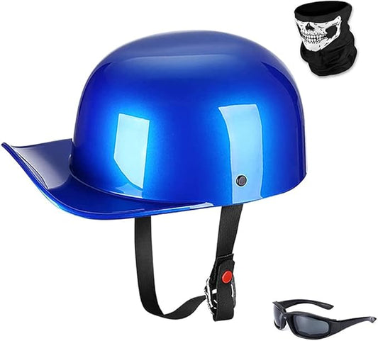 Vintage Open Face Motorcycle Helmet Retro Baseball Cap Half Helmets Men Women for Cruiser Street Scooter Moped Cap Jet with Mask Glasses - DOT Certified