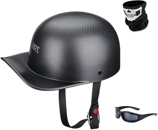 Vintage Open Face Motorcycle Helmet Retro Baseball Cap Half Helmets Men Women for Cruiser Street Scooter Moped Cap Jet with Mask Glasses - DOT Certified