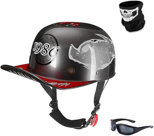 Vintage Retro Open Face Motorcycle Helmet Baseball Cap Half Helmets Men Women for Moped Cap Jet Scooter Street Cruiser with Mask Glasses - DOT Certified
