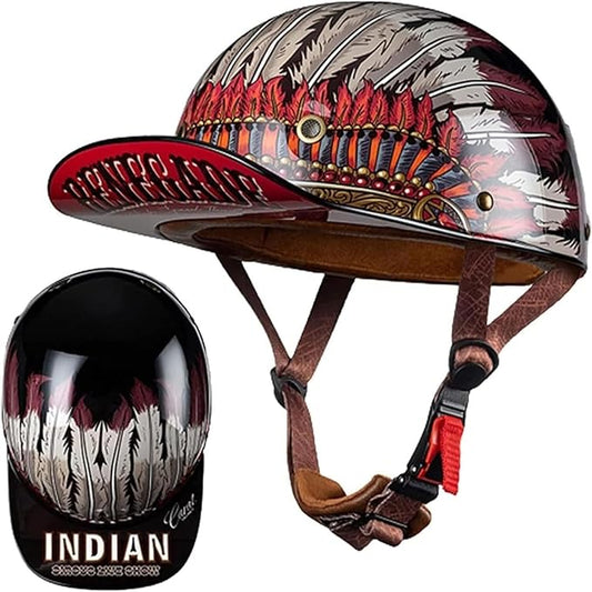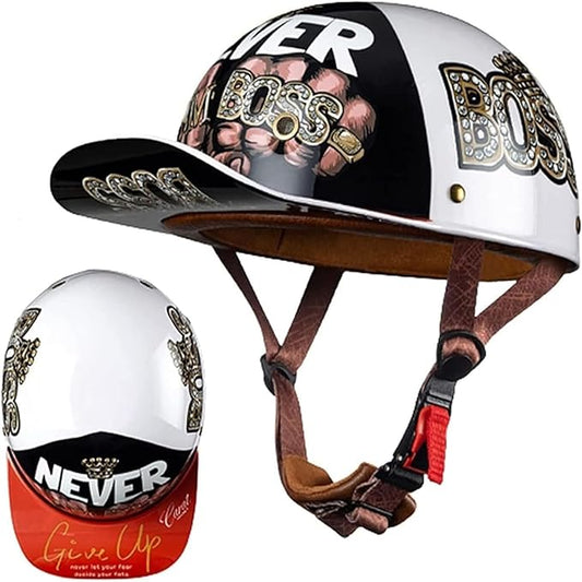 Vintage Baseball Cap Open Face Motorcycle Helmet - DOT Approve,GermanStyle Half Helmet for Adults, Ideal for Cruiser, Scooter & Moped, Unisex Design