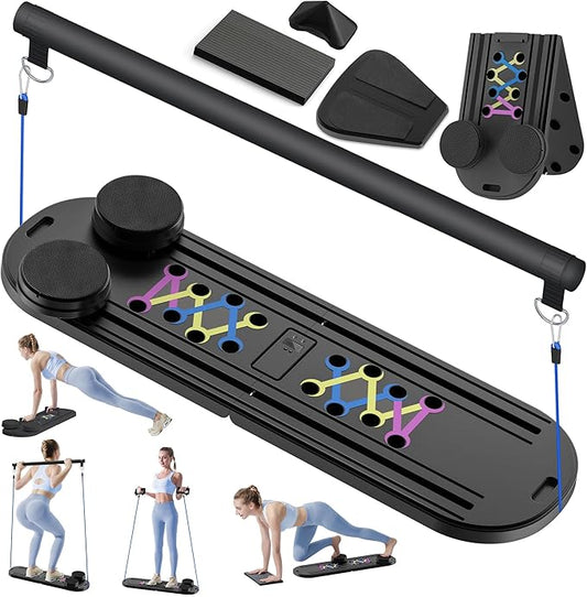 Upgraded Pilates Board - 8-in-1 Fitness Board & Pilates Equipment Set with Ab Workout Equipment, Multifunctional Push-Up Board, Resistance Bands, Balance Board & Timer for Full Body Workout