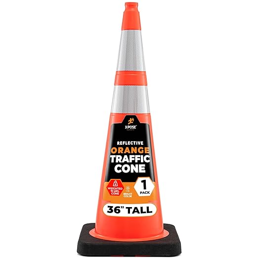 Xpose Safety 36 Inch Orange Traffic Cones Heavy Duty 15lb with 6" & 4" Collars, 1 Pack - Multipurpose PVC Plastic Safety Cone for Parking, Soccer, Caution, Kids and Construction - DOT Approved