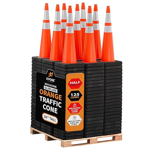 Xpose Safety 36 Inch Orange Traffic Cones Heavy Duty 12lb 6" & 4" Collar - Bulk Half Pallet 125 Pack - Multipurpose PVC Plastic Safety Cone Parking, Soccer, Caution & Construction - DOT Approved