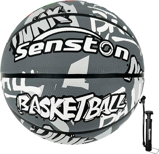 Senston 27.5‘’/29.5'' Basketball Outdoor Indoor Rubber Basketball Ball for Kids/Adult Official Size 5/7 Basket Ball with Pump