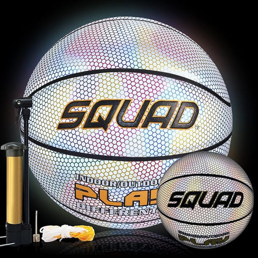 SQUAD NightPlay Reflective Basketball Size 5, Size 7 - Cool Holographic Glow Basketball for Night Game, Ideal Gift for Boys Girls 10-14 Year Old, Cool Teen Toys