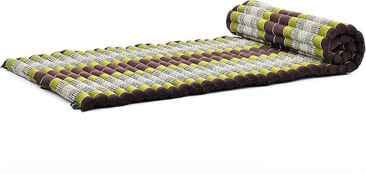 Leewadee - Foldable Floor Mattress - Japanese Roll Up Futon -Trifold Tatami Mat- Guest Floor Bed - Camping Mattress - Thai Massage Mat, Kapok Filled, 75 x 28 inches, Brown Green