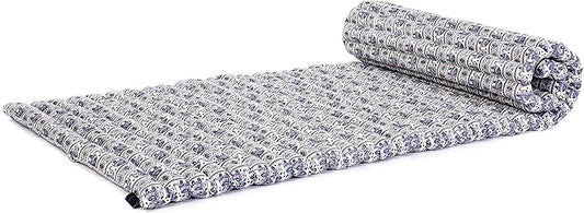 Leewadee - Kapok Roll Mat – Handcrafted Folding Sleep & Relaxation Mattress from Thailand, Ideal as Guest Bed, Camping Mat, Yoga Mat or Traditional Futon, 75 x 39 inches, Blue White