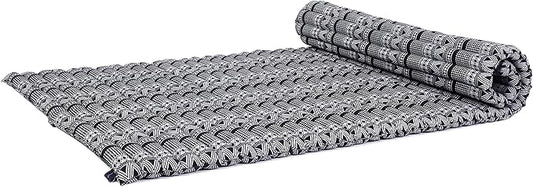 Leewadee - Kapok Roll Mat – Handcrafted Folding Sleep & Relaxation Mattress from Thailand, Ideal as Guest Bed, Camping Mat, Yoga Mat or Traditional Futon, 75 x 39 inches, Black White
