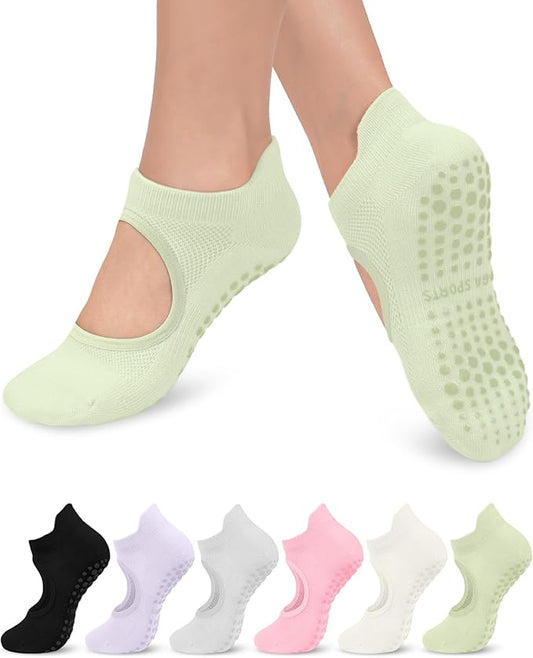 6 Pairs Grip Pilates Socks for Women, Non-slip Yoga Athletic Socks for Barre Ballet Barefoot Workout Hospital