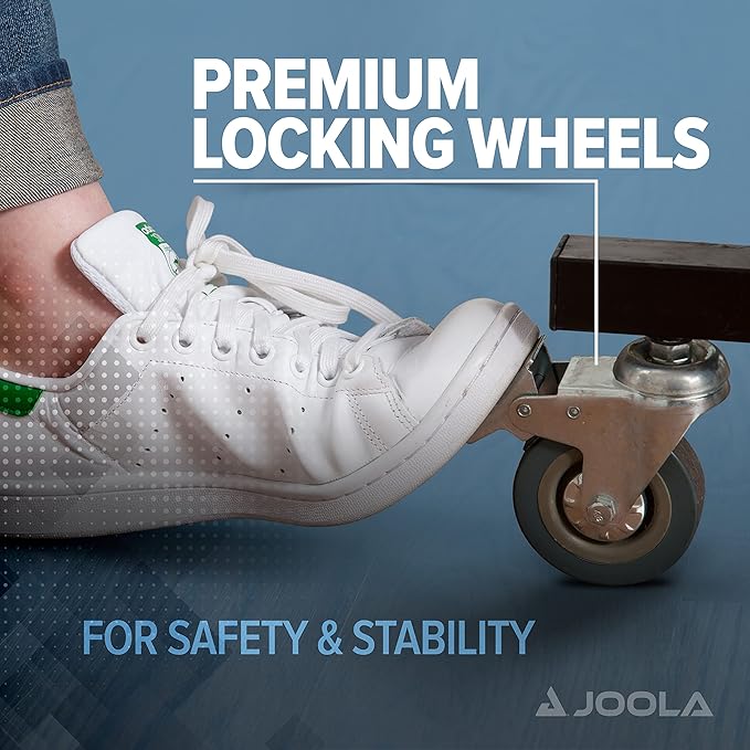 - SAFE, MOBILE, COMPACT STORAGE: The 2 halves and 3" lockable wheels and casters makes this ping pong table easy to roll and move around when not in use. Does not include ping pong paddles