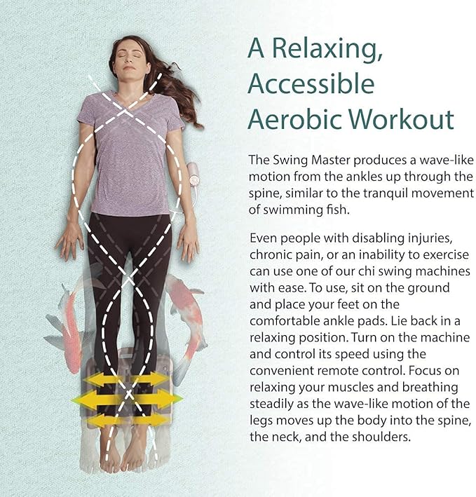 - ๐คฉ ๐๐ฒ๐ป๐๐น๐ฒ ๐ฃ๐ฎ๐๐๐ถ๐๐ฒ ๐๐ ๐ฒ๐ฟ๐ฐ๐ถ๐๐ฒ ๐ณ๐ผ๐ฟ ๐๐๐น๐น-๐๐ผ๐ฑ๐ ๐ฅ๐ฒ๐น๐ฎ๐ ๐ฎ๐๐ถ๐ผ๐ป: Experience relaxing, full-body movement with the Swing Master Chi Machine. Its wave-like motion starts at the ankles, moving up the legs and spine to stimulate muscle contractions, improve circulation, encourage lymphatic flow, and help loosen tight hips, reduce leg swelling, and promote relaxation right from your own home.