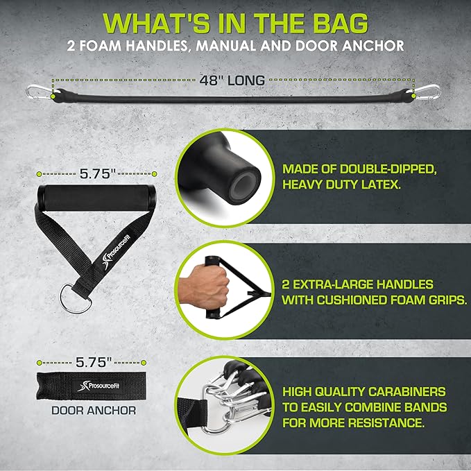 - FEATURES - Includes 2 soft foam handles for superior comfort, door anchor and exercise guide. Great for shoulder raises, chest presses, back rows and more;