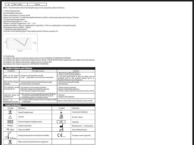 - Measuring Range : [PARTIAL] 60-100 bpm for heart rate, 95-100% for blood oxygen saturation