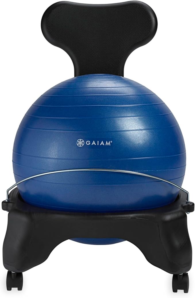 Gaiam Classic Balance Ball Chair – Ergonomic Stability Chair for Desk & Office | Yoga Ball Seat with Base, Air Pump, & Exercise Guide | Improves Posture & Core Strength (300 lb Capacity)