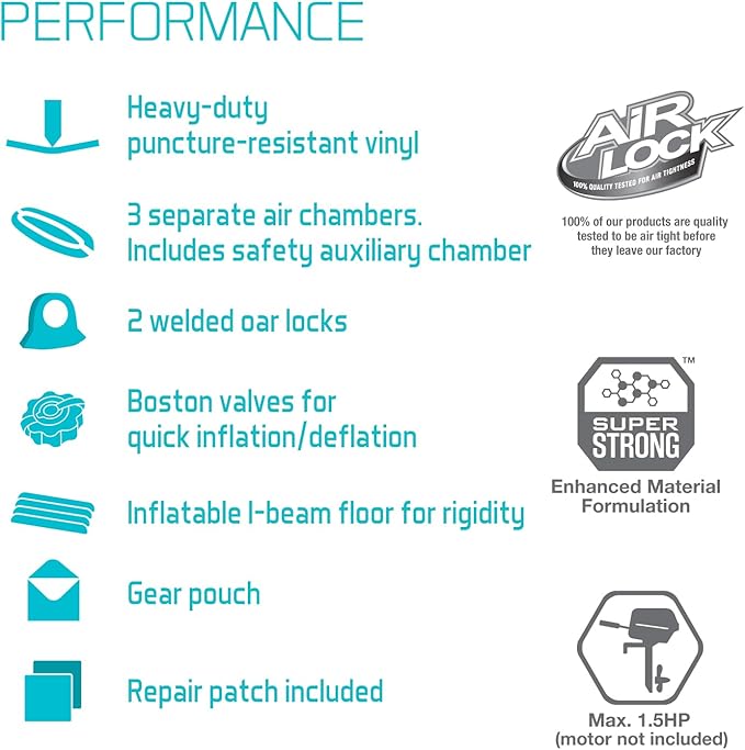 - ✔ ACCESSORIES – Included with (2) 48-inch aluminum french oars for easy paddling, (2) fishing rod holders, a motor mount fitting, welded-on oar holders, grab handles on each side and an all-around grab line for convenience