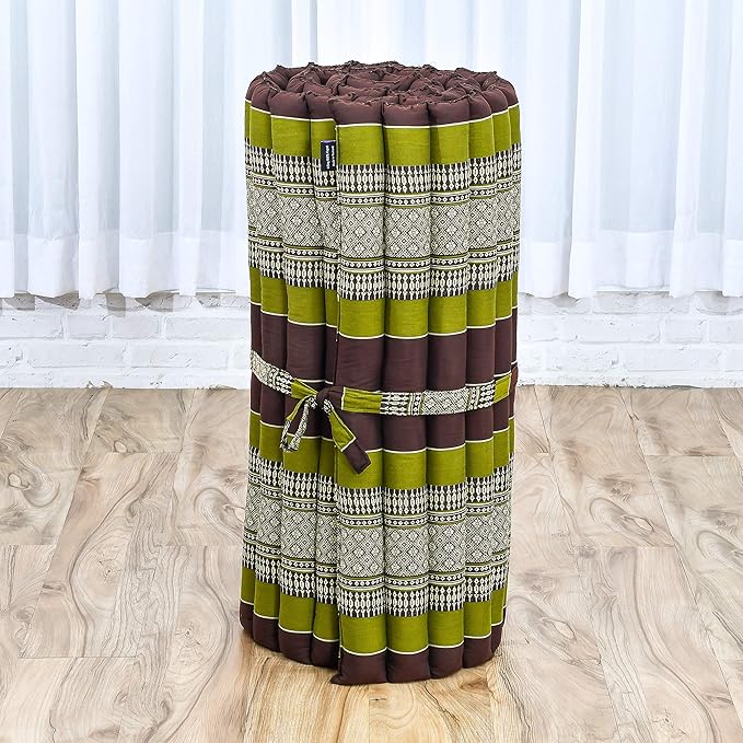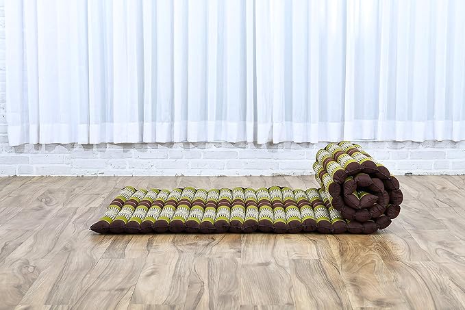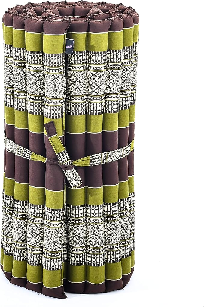 Leewadee - Foldable Floor Mattress - Japanese Roll Up Futon -Trifold Tatami Mat- Guest Floor Bed - Camping Mattress - Thai Massage Mat, Kapok Filled, 75 x 28 inches, Brown Green