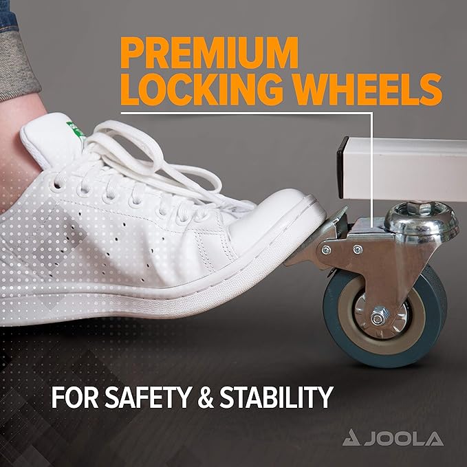 - CORNER BALL HOLDERS AND ABACUS SCORER: In addition to the sleek, black top, the table features four ball holders and two magnetic abacus scorers making it a great, stylish addition to any home. Each ball holder holds 3 40mm JOOLA table tennis balls.