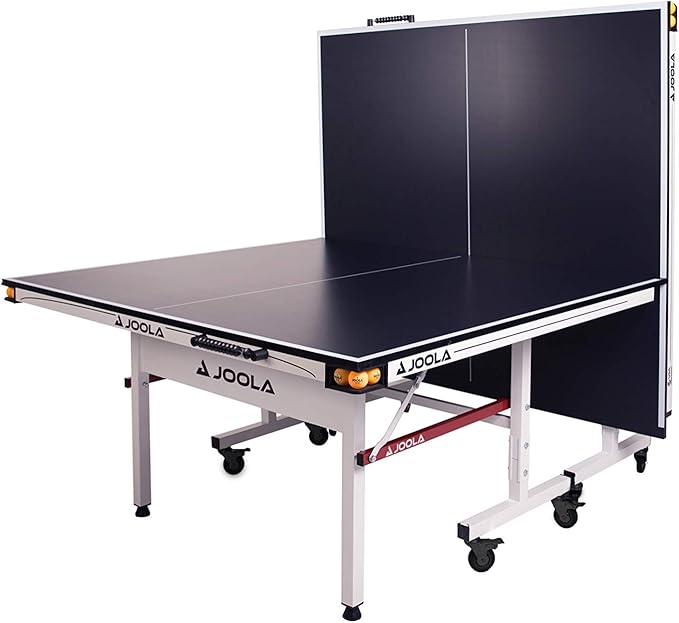 - CORNER BALL HOLDERS AND ABACUS SCORER: In addition to the sleek, black top, the table features four ball holders and two magnetic abacus scorers making it a great, stylish addition to any home. Each ball holder holds 3 40mm JOOLA table tennis balls