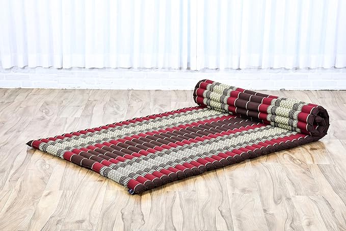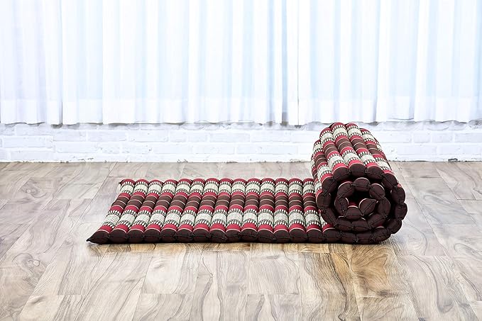 Leewadee - Kapok Roll Mat – Handcrafted Folding Sleep & Relaxation Mattress from Thailand, Ideal as Guest Bed, Camping Mat, Yoga Mat or Traditional Futon, 75 x 39 inches, Brown Red