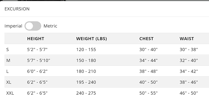 - SM/MD/LG: 38 lbs; XL/2XL: 52 lbs