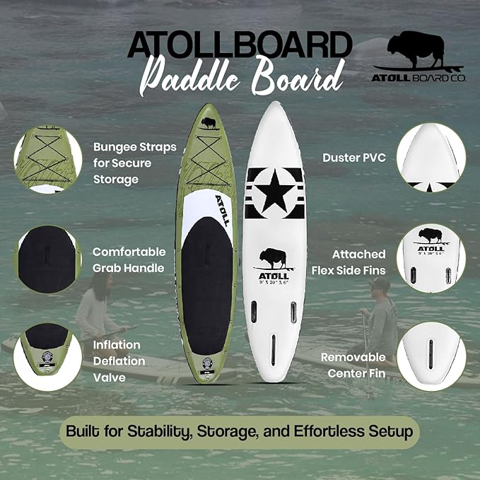 - Effortless tracking stand up paddle boards with Fixed Tri Fin design. Enjoy a 2-year warranty on Atoll Board Co's premium inflatables. Join the world's fastest-growing water sport