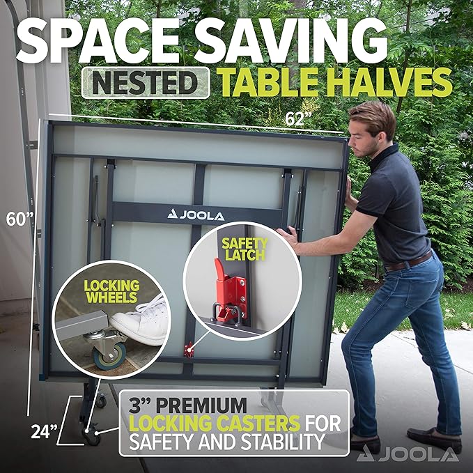 - TOURNAMENT QUALITY OUTDOORS: Competition-grade 9x5 foot regulation size ping pong table outdoor. Combines JOOLA's indoor ping pong table quality with outdoor durability. Looks great with any patio set and perfect for your deck, backyard or playground