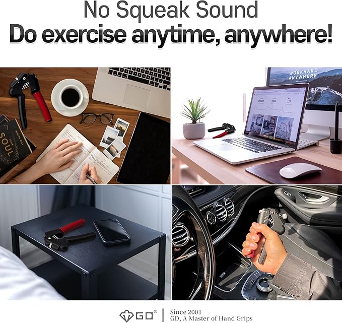 - QUIET & DURABLE ► No noise or breakdown by using high-strength compressing spring, high quality & durable engineering plastic and stainless steel. It is totally different from the cheap Chinese hand grippers which is easily broken. The durability of the compressing spring is incomparable.