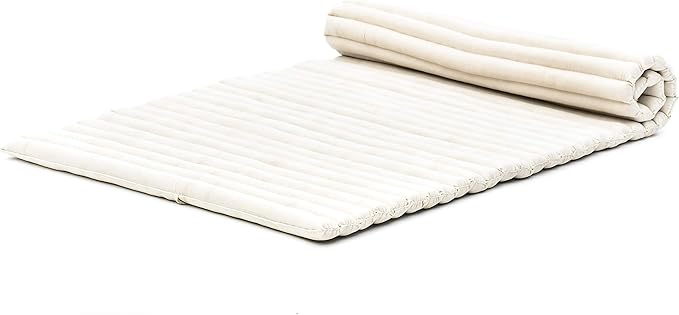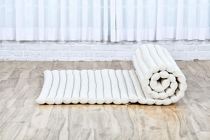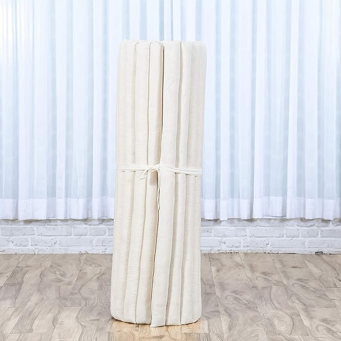 Leewadee - Kapok Roll Mat – Handcrafted Folding Sleep & Relaxation Mattress from Thailand, Ideal as Guest Bed, Camping Mat, Yoga Mat or Traditional Futon, 75 x 39 inches, Ecru