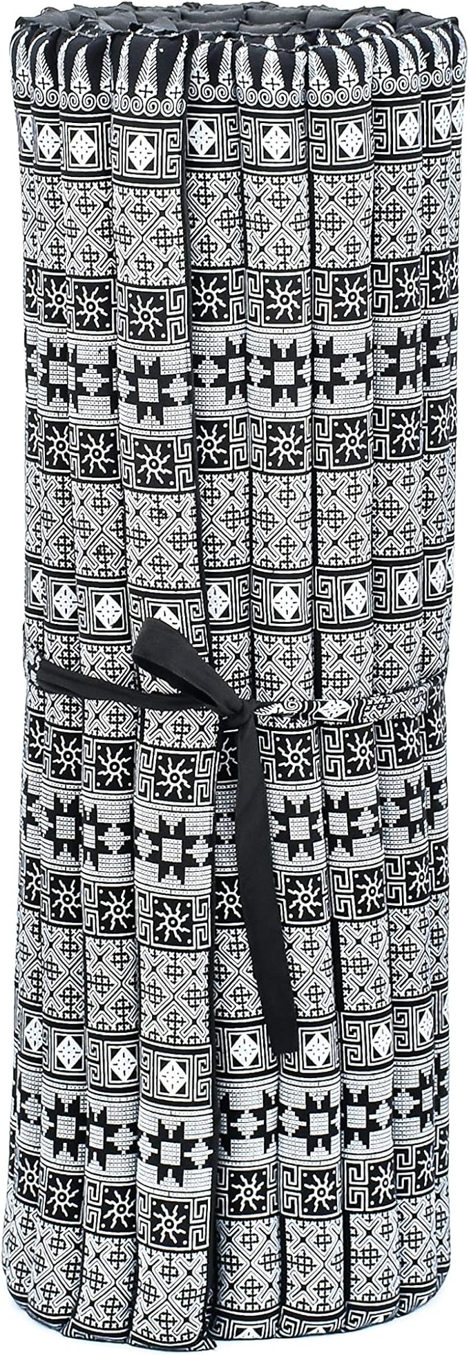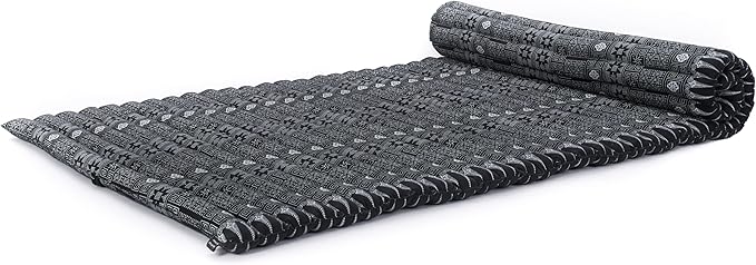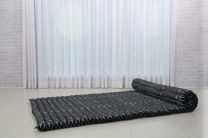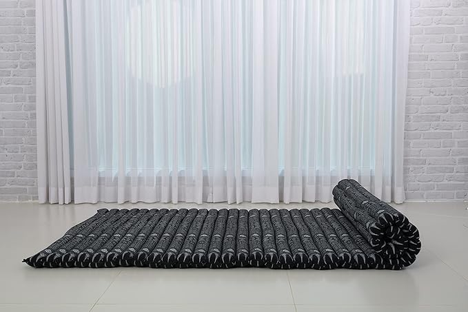 Leewadee - Kapok Roll Mat – Handcrafted Folding Sleep & Relaxation Mattress from Thailand, Ideal as Guest Bed, Camping Mat, Yoga Mat or Traditional Futon, 75 x 39 inches, Black