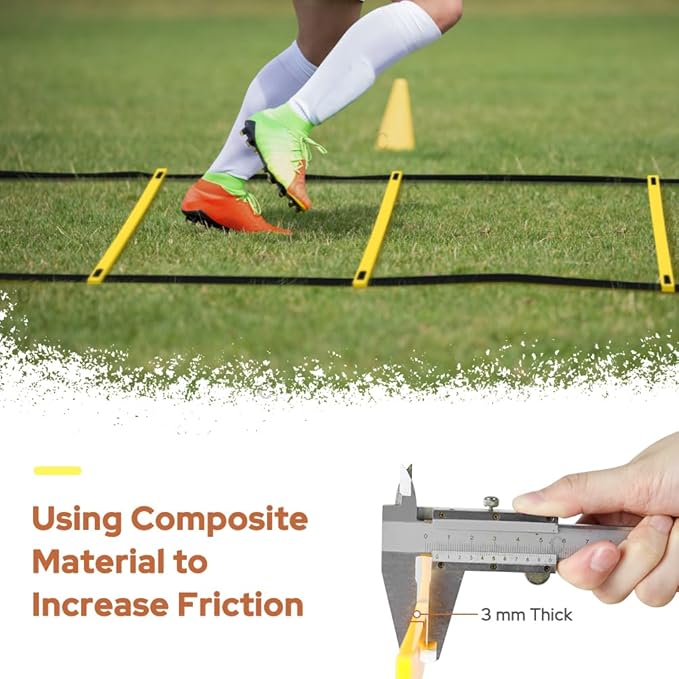 - Ideal Tool for Outdoor Sports Training: The agility ladder is very helpful for footbald, soccer, basketball drills, hockey, tennis, etc as it can increase your speed, leg strength and improve your balance ability