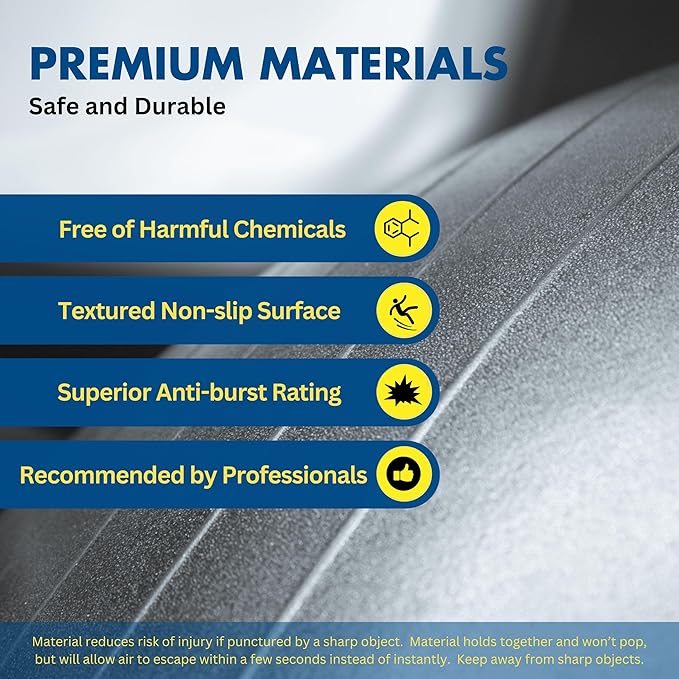 - ANTI BURST AND SLIP RESISTANT: A work out ball with sturdy PVC to withstand the most punishing workouts. This heavy duty stability ball is rated beyond 330 lbs of weight; safe as a pregnancy ball or birthing ball.