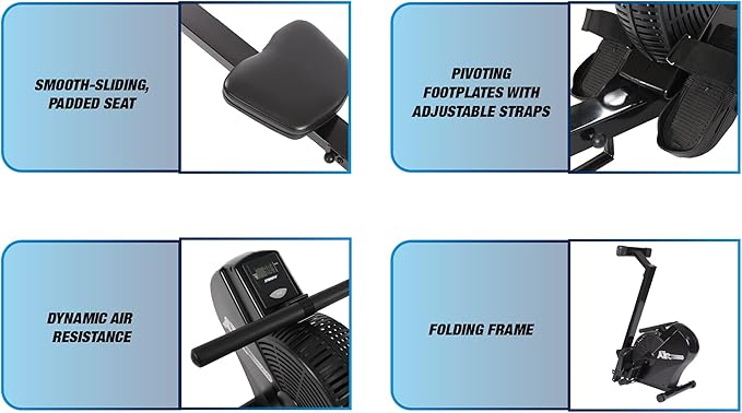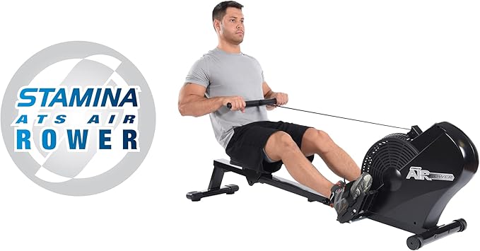 Stamina ATS Air Rower Machine with Smart Workout App - Foldable Rowing Machine with Dynamic Air Resistance for Home Gym Fitness - Up to 250 lbs Weight Capacity
