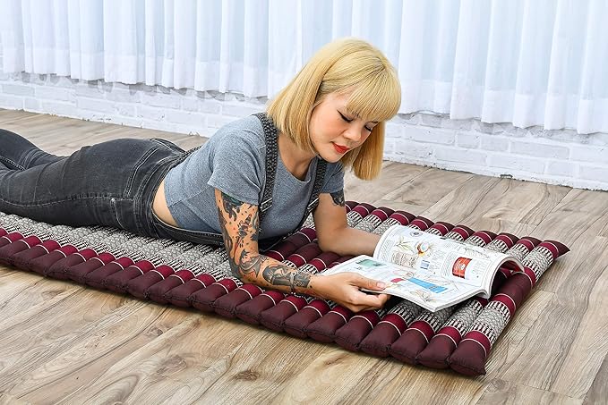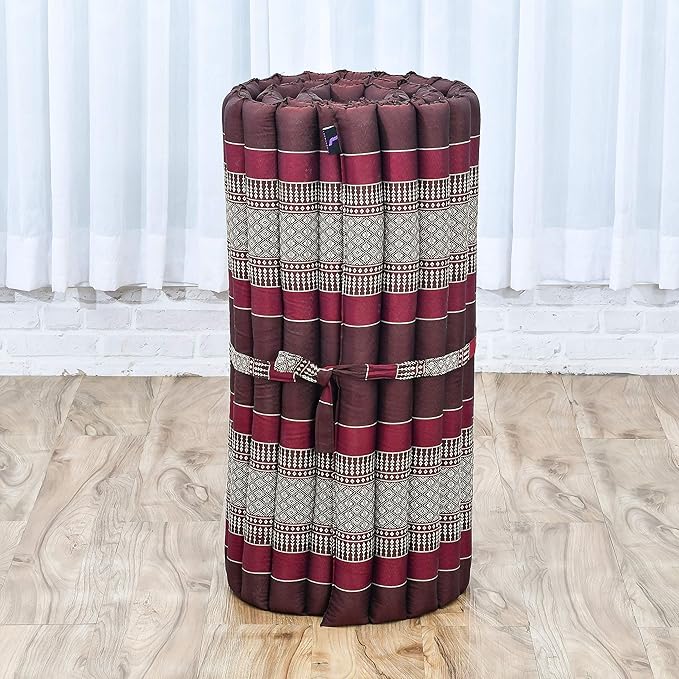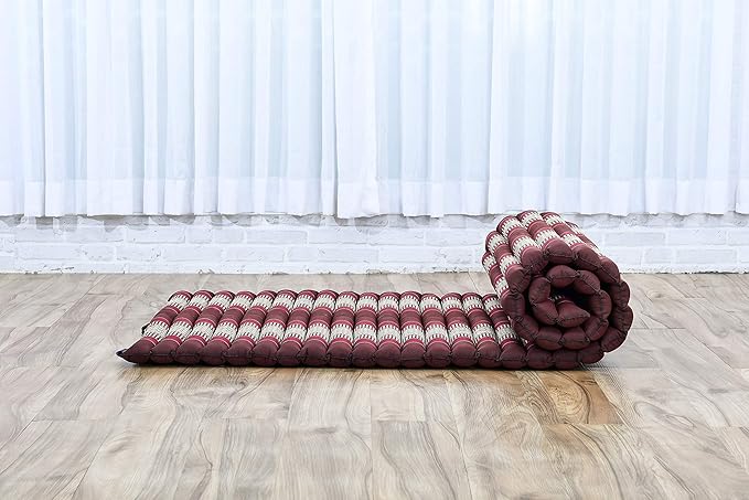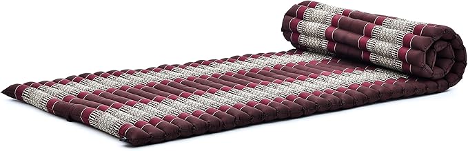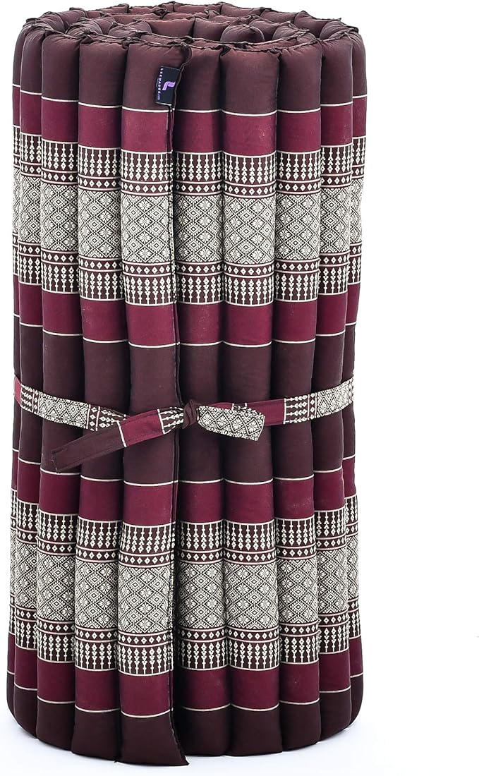 Leewadee - Foldable Floor Mattress - Japanese Roll Up Futon -Trifold Tatami Mat- Guest Floor Bed - Camping Mattress - Thai Massage Mat, Kapok Filled, 75 x 28 inches, Brown Red