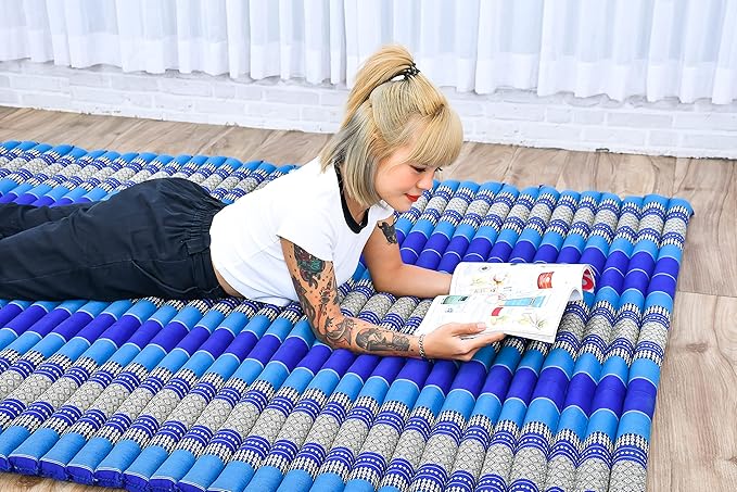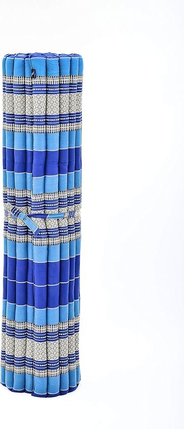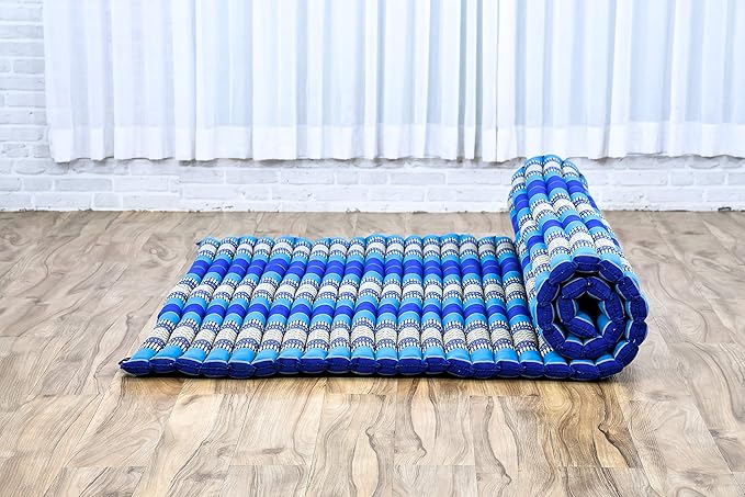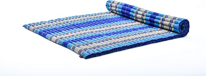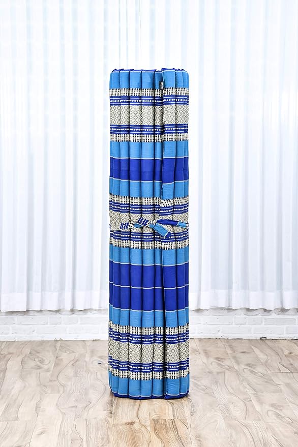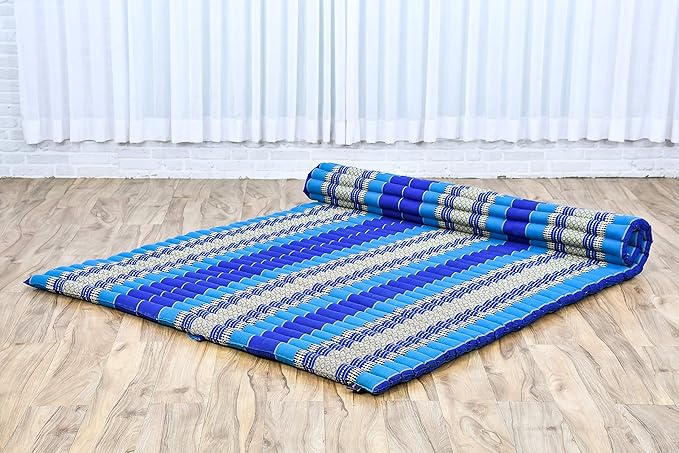 Leewadee - Foldable Floor Mattress - Japanese Roll Up Futon -Trifold Tatami Mat- Guest Floor Bed - Camping Mattress - Thai Massage Mat, Kapok Filled, 75 x 57 inches, Blue