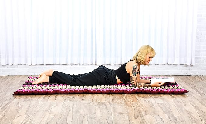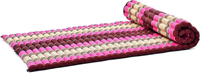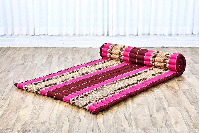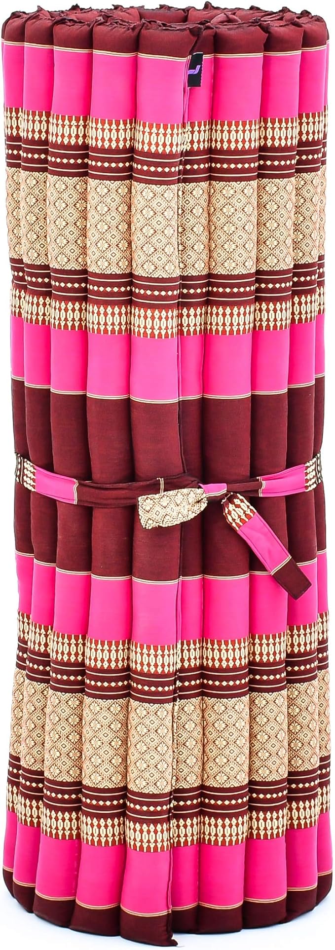 Leewadee - Kapok Roll Mat – Handcrafted Folding Sleep & Relaxation Mattress from Thailand, Ideal as Guest Bed, Camping Mat, Yoga Mat or Traditional Futon, 75 x 39 inches, Auburn Pink