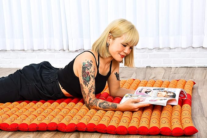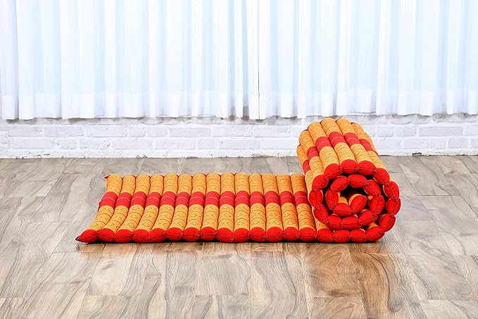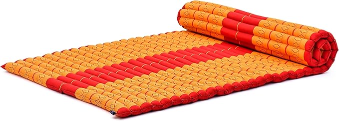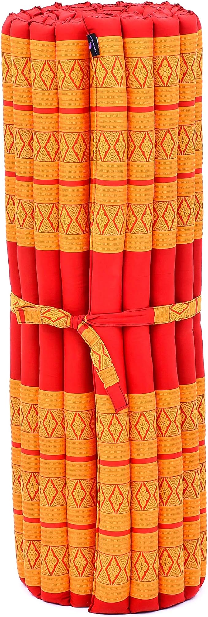 Leewadee - Kapok Roll Mat – Handcrafted Folding Sleep & Relaxation Mattress from Thailand, Ideal as Guest Bed, Camping Mat, Yoga Mat or Traditional Futon, 75 x 39 inches, Orange Red