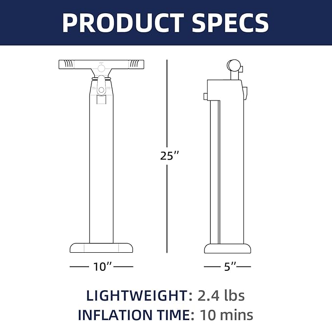 - 【Durable Material】The standup paddle board pump is made of PP material, which are very sturdy and durable. The external aluminum tube increases inflation efficiency. It will last for a very long time. Our pump is equipped with a long hose that uses a snap-on joint mechanism made for high-pressure valves that will hold fast and won't fall off.