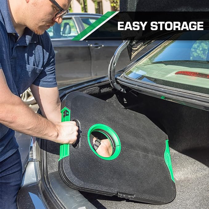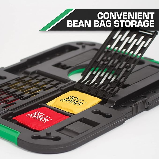 - EASY TRANSPORT & STORAGE: The ultimate travel Cornhole game, this set has portable carrying handles and inner storage compartments. It folds and packs easily into limited trunk space.