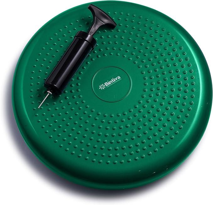 - Ships inflated, includes a pump for adjustments. Stability disc size: 13 inches / 33 cm diameter