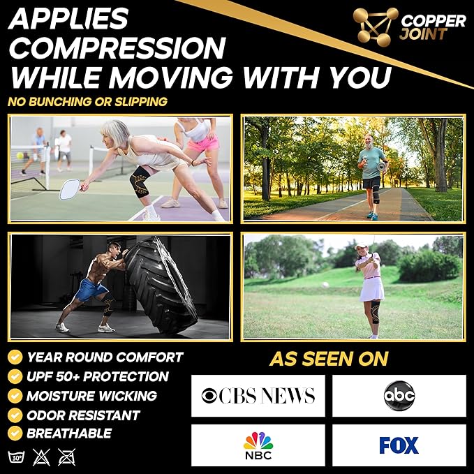 - Copper Infused Knee Compression Sleeve for Daily Support- Our copper infused knee compression sleeve offers flexible support for workouts, recovery, or everyday movement. Whether you need a knee brace for women, a knee sleeve for men, or versatile joint support, this compression knee sleeve helps stabilize the leg without limiting mobility.