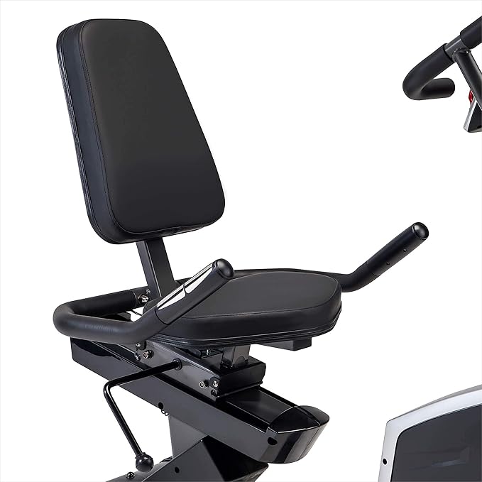 - Designed to provide ample space for the legs, this bike boasts an adjustable padded seat to accommodate most users | Its lever-based System allows quick adjustment of the seat even while seated