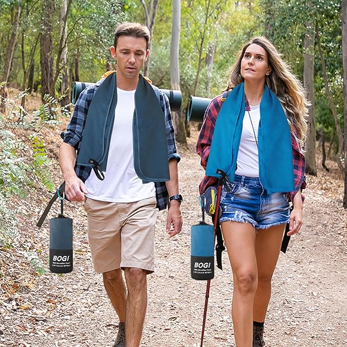 - Bonus a Gift Bag & Carabiner: BOGI towel comes with a breathable gift bag, easy to carry and hanging loop to protect your towel. When you go out or travel, you can put it into the bag. Our microfiber travel towel set is so compact and space saving. The snap loop is great for hanging up. And without worrying about it flying away. Daily lifestyle, less trouble for travel. A love gift for your family, lover and friends. If you have any questions about our towels, please feel free to contact us.