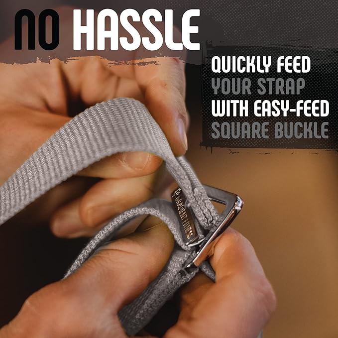 - šššš-š ššš š ššššššš-šššš šššššš: Stop wasting time between poses. Quickly feed the 8 ft. yoga strap through our innovative easy-feed square buckle. No more losing your Zen hassling with your yoga stretch strap.