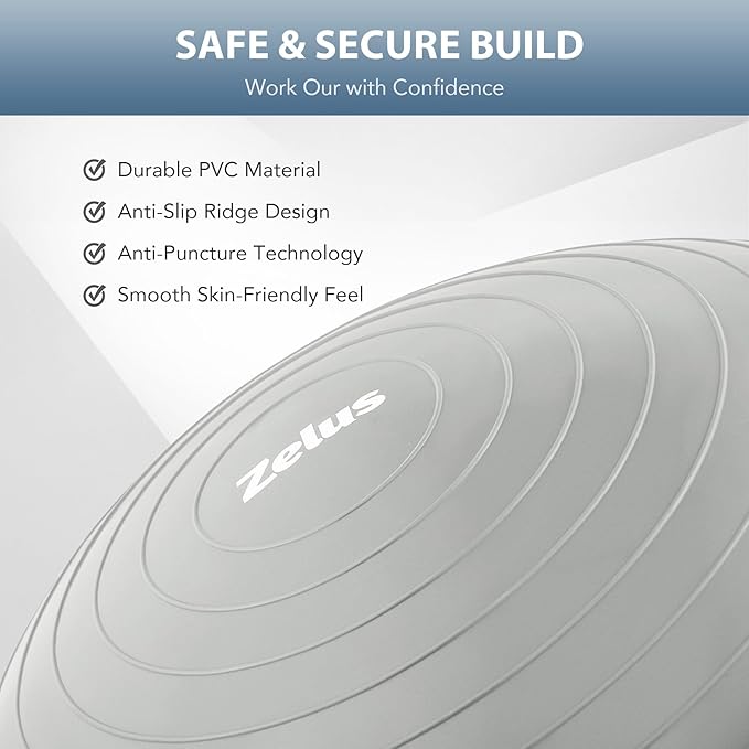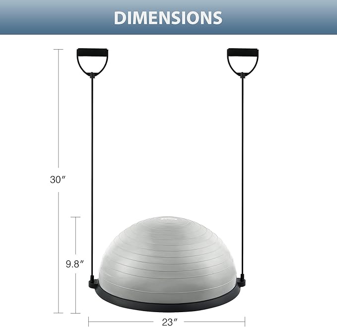 - BALL PUMP INCLUDED: A complete combo, this half-dome stability ball comes with a complimentary foot pump that makes it easy to get fully inflated to 9.8β in under 5 minutes. The ballβs high-quality air valve prevents air leakage and extends service life