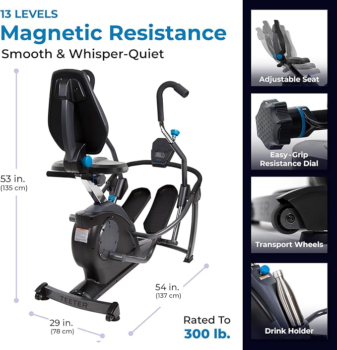 - Model Name : Teeter FreeStep Recumbent Cross Trainer Stepper, Zero-Impact Exercise Bike Alternative w/Patented Physical Therapy Stride, Up to 350lb, Free App w/Trainer Workouts Teeter FreeStep Recumbent Cross Trainer Stepper, Zero-Impact Exercise Bike Alternative w/Patented Physical Therapy Stride, Up to 350lb, Free App w/Trainer Workouts