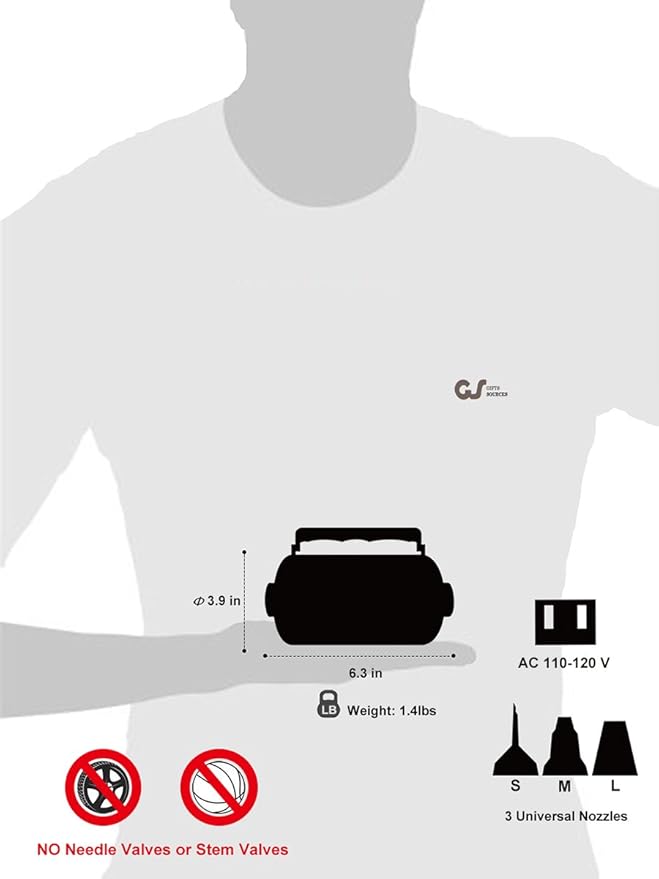 - Portable for Easy Operation: The measurement of 6.3x4.3x3.9 inches, weight of 1.4 lb, 4.9 ft length power cord, easy-handhold grip design. With 3 Different nozzles, make it convenient to inflate or deflate various products.