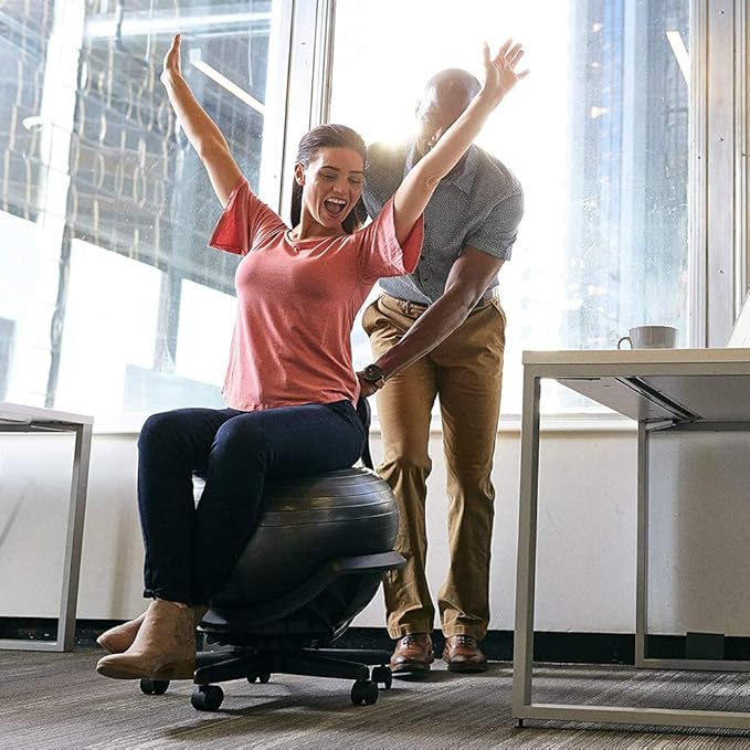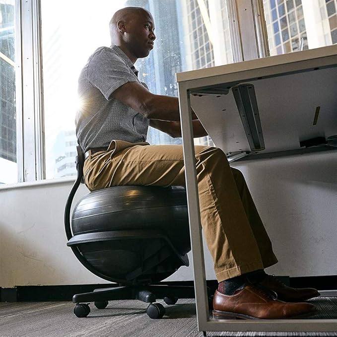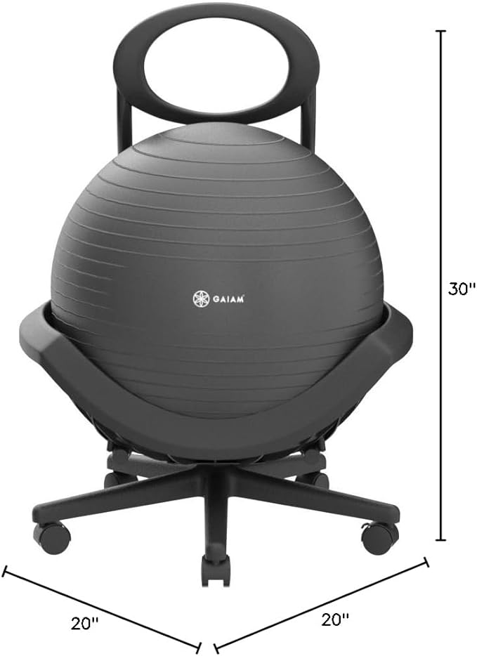 Gaiam Ultimate Balance Ball Chair (Standard or Swivel Base Option) - Premium Exercise Stability Yoga Ball Ergonomic Chair for Home and Office Desk - 52cm Anti-Burst Ball, Air Pump, Exercise Guide