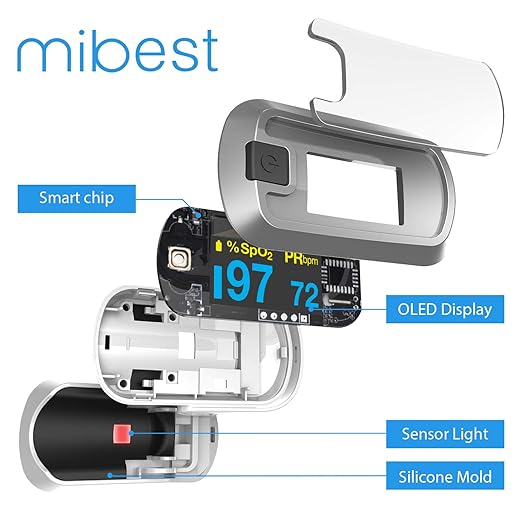 - ACCURATE AND RELIABLE: MIBEST oxygen meter finger pulse oximeter accurately determine your SpO2 in 10 seconds and can read and display up to 100% on a larger OLED display.